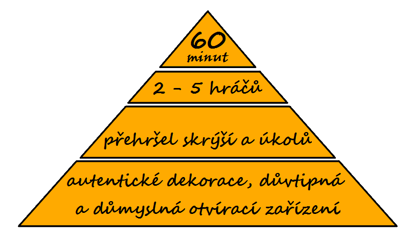 Limit 60 minut je stanovený hlavně pro ostřílené hráče, kteří se snaží sbírat rekordy - ostatní se tohoto limitu obávat nemusí. Naším cílem je vaše spokojenost a prožitek ze hry, proto úspěšnost v naší místnosti dosahuje 100% (jen časy a počty nápověd se různí) ;-)